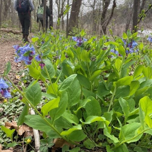 Virginia bluebells (Mertensia virginica) lining the trails in Great Falls area.