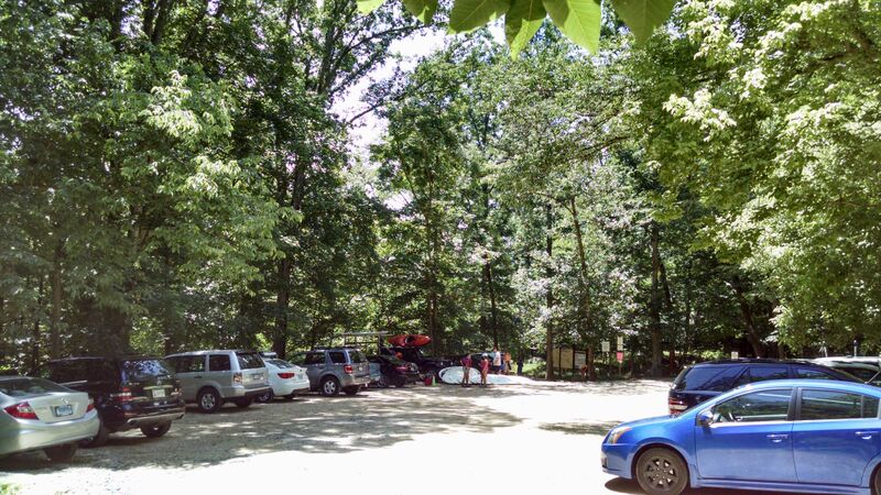 Small lot off MacArthur Boulevard, across the street from Old Anglers Inn and near Billy Goat Trails A & B. Also near bathrooms and towpath access.