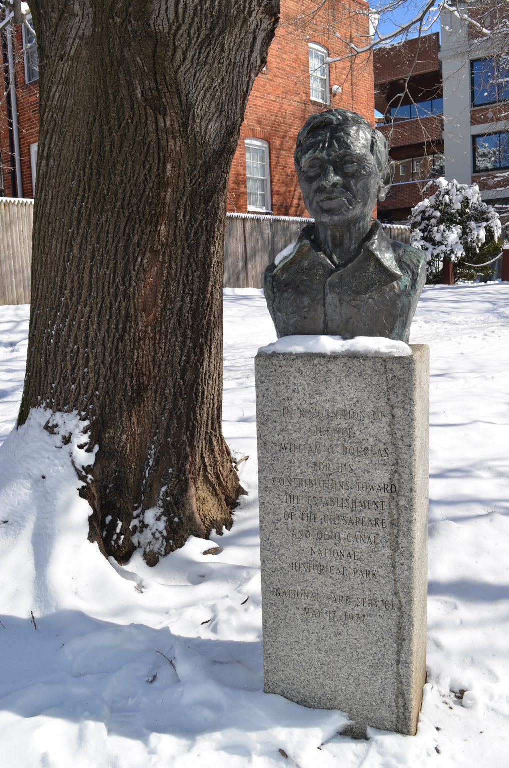 Why does the bust of a former Supreme Court justice hold a place of prominence near the Canal in Georgetown? The answer? Because of a very high profile dare.