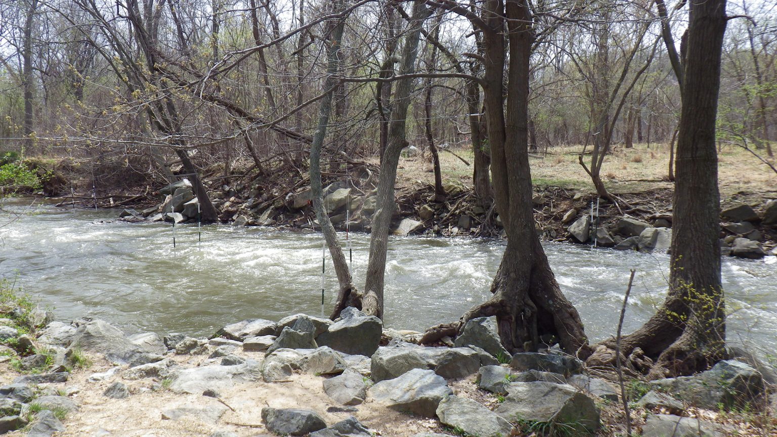 Some of the nation’s most accomplished kayakers, including many Olympians, have spent hours perfecting their craft on Potomac River whitewater training runs. One training site is here on the feeder canal, originally built to allow the Potomac River to feed into the C&O Canal as it made its way into Georgetown. There are 40 to 50 training gates here in Class I-II difficulty levels at normal river flow. A dirt path near Lock #6 (off the Clara Barton Parkway) leads to the kayak run.