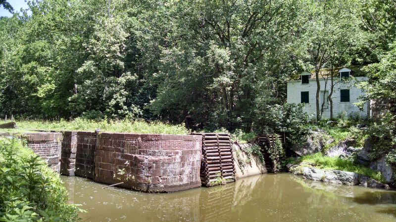 The sandstone that once made up Lock 16 has largely been replaced by brick along the Lock walls. In this lock there are inscriptions in the coping stone on the towpath side. These inscriptions read “J.W. Fisher, Jr.” and “W. Spong”, Fisher was a canal superintendent, and Willard Spong being the other inscription was and 11 year-old boy who unfortunately lost his life during an accident on his father boat.