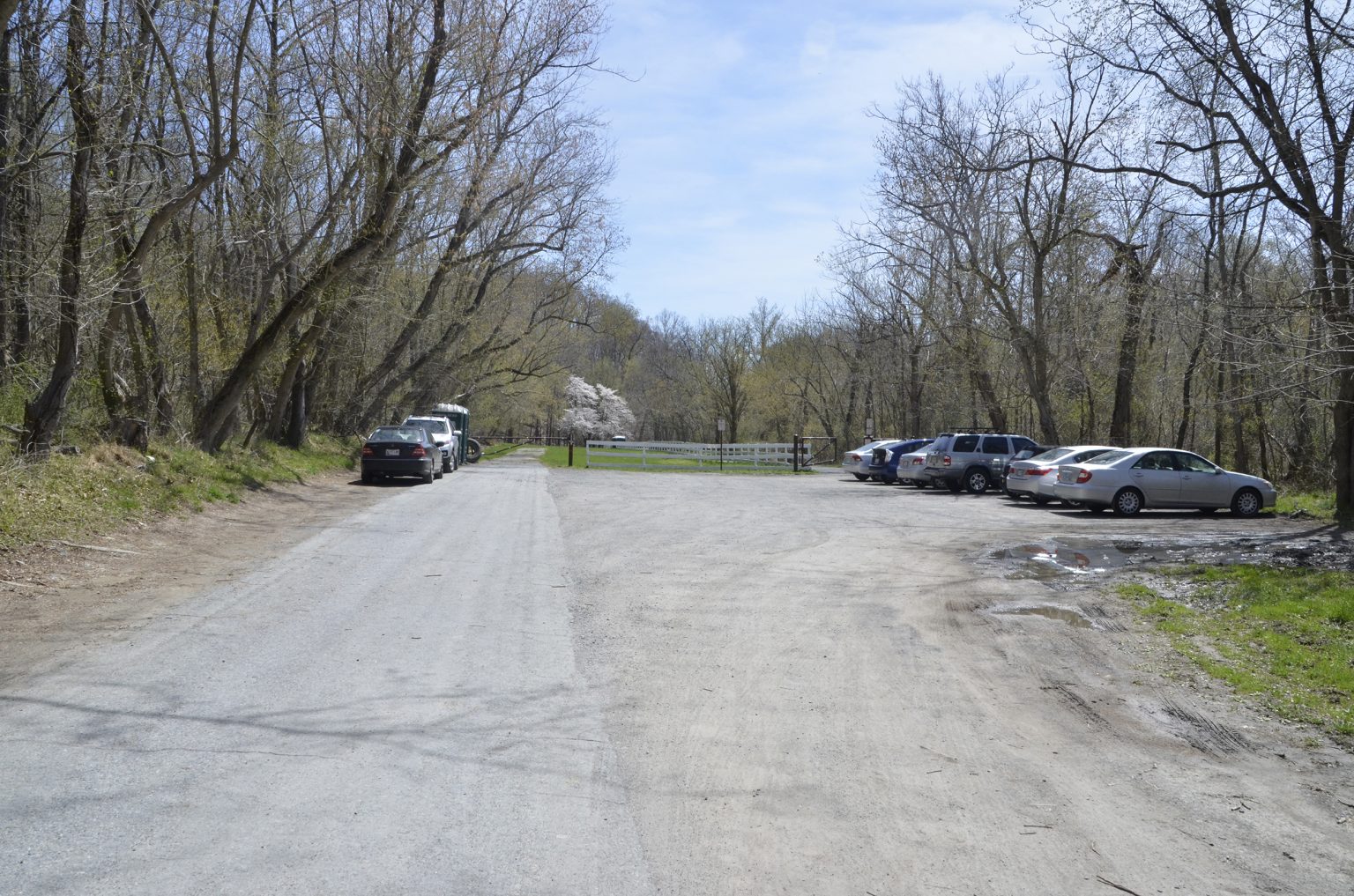 Small lot. Turn off River Road onto Pennyfield Lock Rd. Near Lock 22 and Lockhouse 22, which is available for overnight stays at part of the Canal Quarters program.