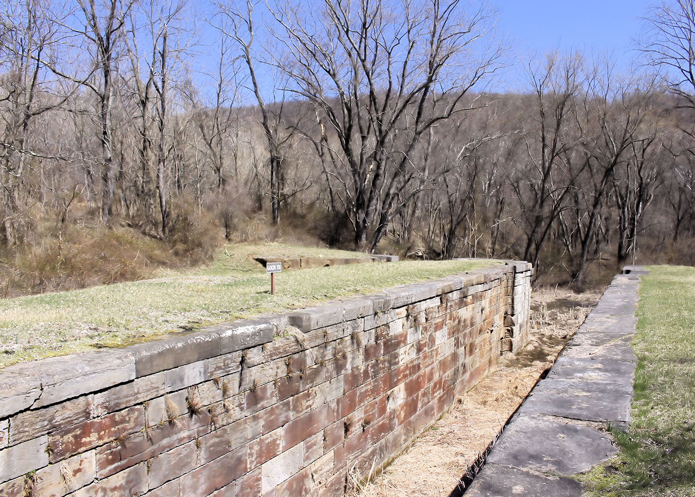 Lock 73 sat in an area referred to as “The Narrows” during canal days. “The Narrows” is an area along the canal where the canal, highway, and railroad are squeezed in a tight space between the Potomac and the ends of Nicholas Ridge and Irons Mountain.