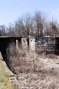 Lock 74 was completed in 1841 and later rebuilt in 1869. This is one of the few locks along the canal that has a 10′ lift as opposed to the average 8′ lift of the other locks. The limestone used to build this lock as well as locks 72, 73 and 75 was described as “Beautiful, of good quality, and in great abundance”.