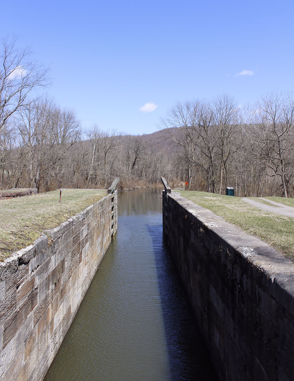 Lock 75 is the last lift lock on the C&O Canal. This lock has a lift of 10′ and has a total lift of 609.193′ above the Georgetown tide lock.