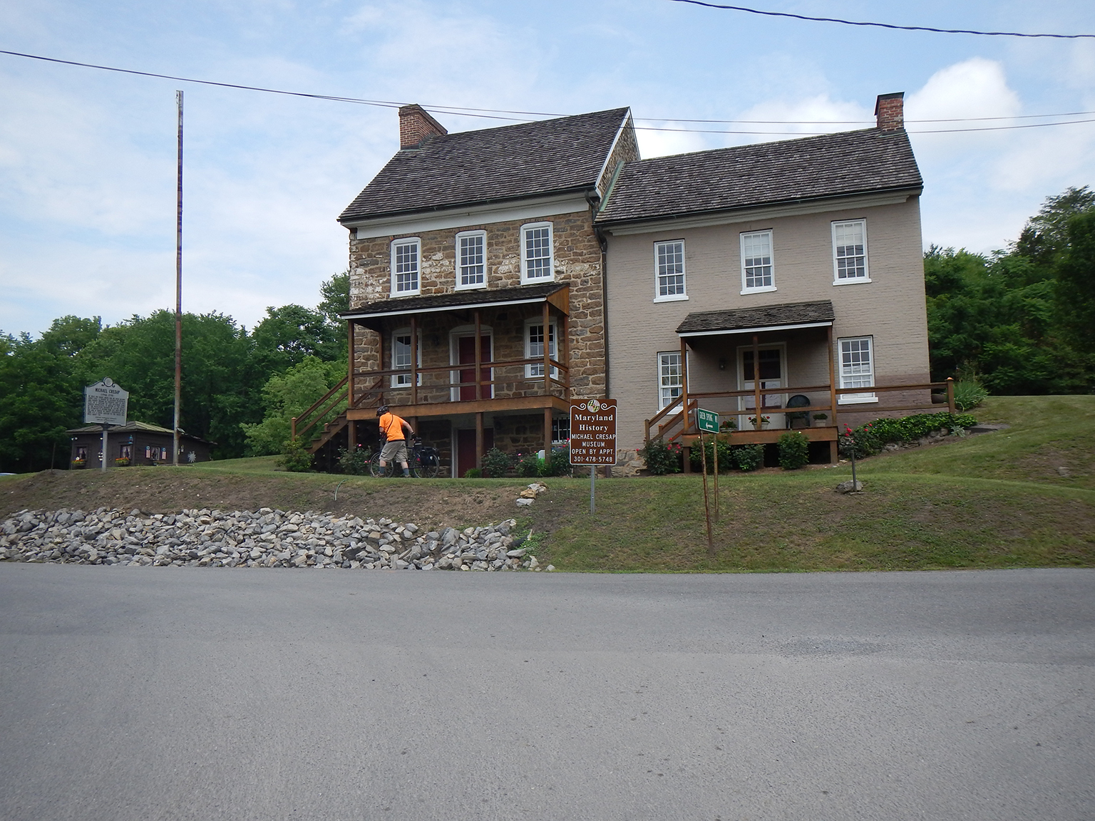 Built in 1762, Thomas Cresap with his 20-year-old son Michael built this house. Michael died 13 years later, but Thomas lived into his nineties. The house is one of the only remnants of the frontier the Cresap family built in Oldtown. Reverend John Jacobs, who married Michael Cresap’s widow, built the brick addition in 1871.