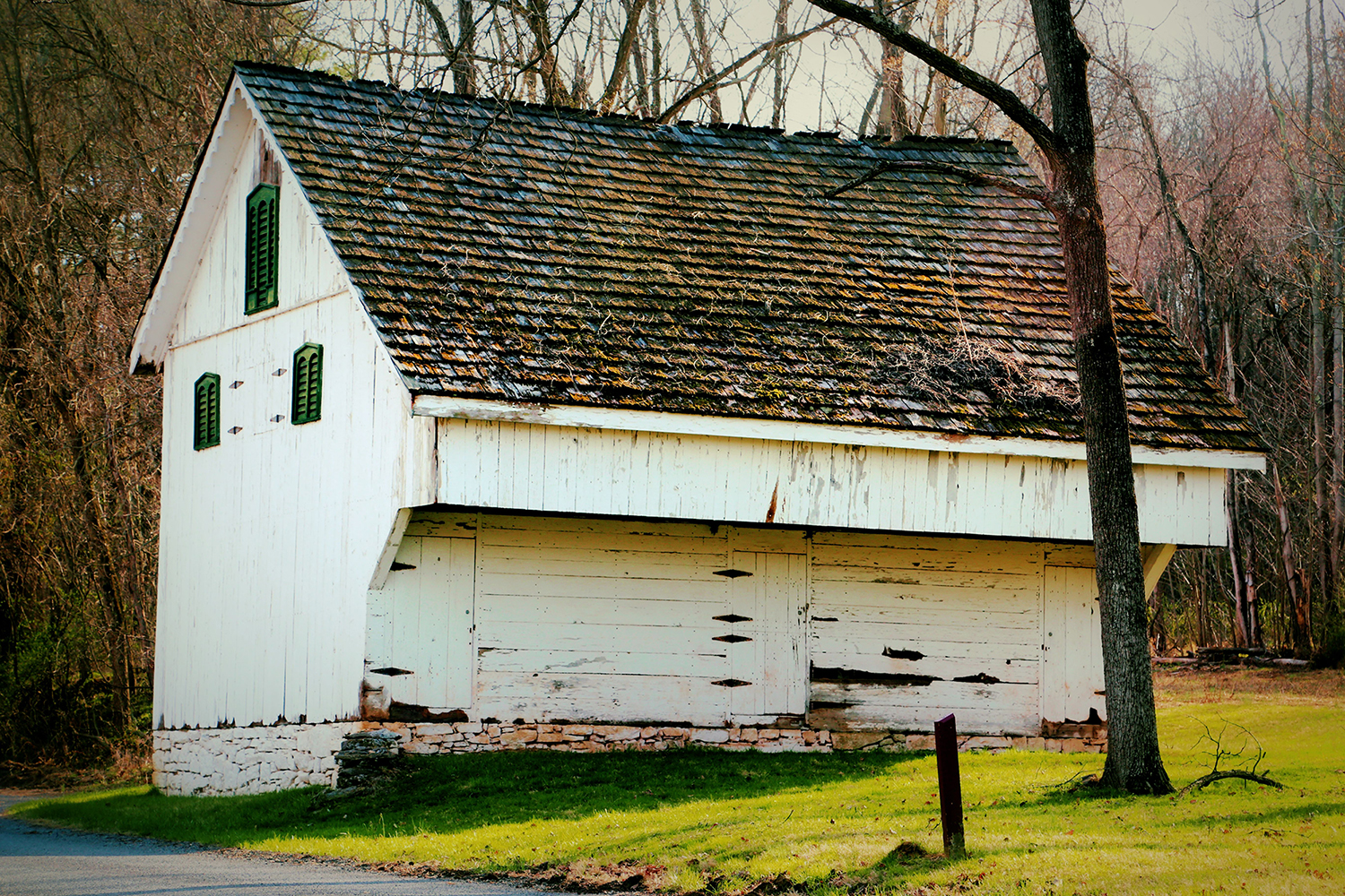 At mile marker 109, two hundred feet upstream on the berm side, sits a mule barn used to house mules during the winter months when the canal was closed. The ‘engines’ of canal boats, mules usually worked in pairs of two. While one pair towed the boat for a six-hour shift, called a “trick” and covering about 16 miles, the other pair would rest in the mule barn on the boat. The mules pulled 120 tons of coal along the Canal on a diet of corn, hay, and oats.