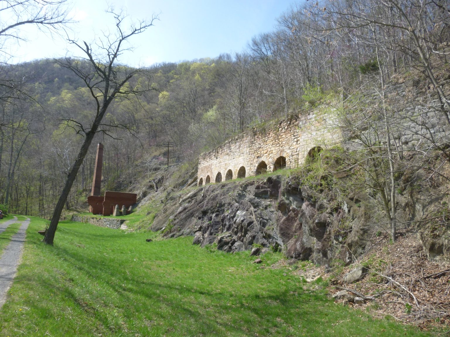 In 1863, the mill was sold and renamed the Round Top Hydraulic Cement Company. It continued as a booming industry, averaging 2,100 barrels of hydraulic cement per week, making it one of Washington County’s most profitable businesses. Over 100 locals workers operated the mill, which included a 16-foot-diameter overshot waterwheel, four pairs of grind stones, and eight coal-fired cement kilns. The cement mill was relocated to the berm side of the canal – meaning it no longer got power from the fall of water from the canal. It was most likely converted to steam power as a chimney sits upon the present-day ruins. The mill was put out of business by Portland cement – which was stronger and took longer to harden – and closed in 1909. Although the landscape has changed and the people are gone, the mill ruins still echo with signs of past commerce, prosperity, hard labor, and industry.