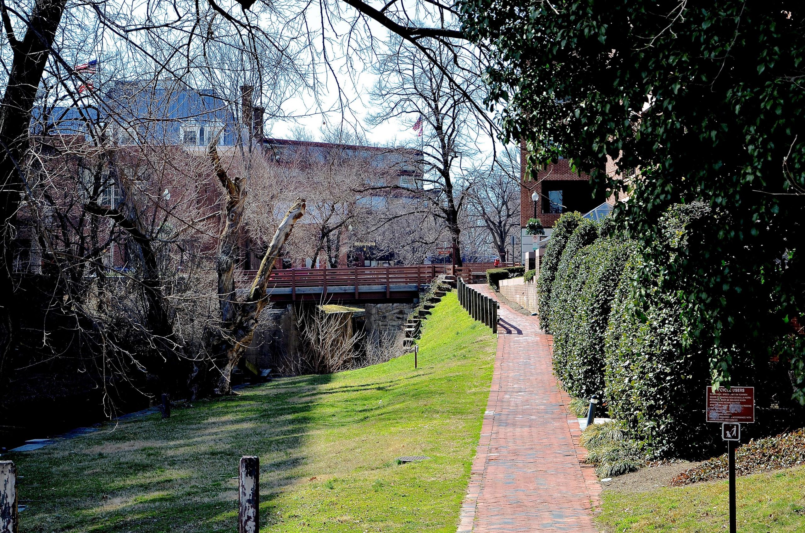 From Mile 0, Rock Creek and the Rock Creek Park Trail, take a left toward Georgetown onto the modern version of the towpath, which starts as a brick path on the side of the C&O Canal farthest from the river. When the Canal was operational, the mules actually walked on the river side of the Canal to avoid the wharves. At 29th street they crossed over the Green Street Bridge.
