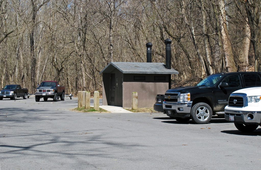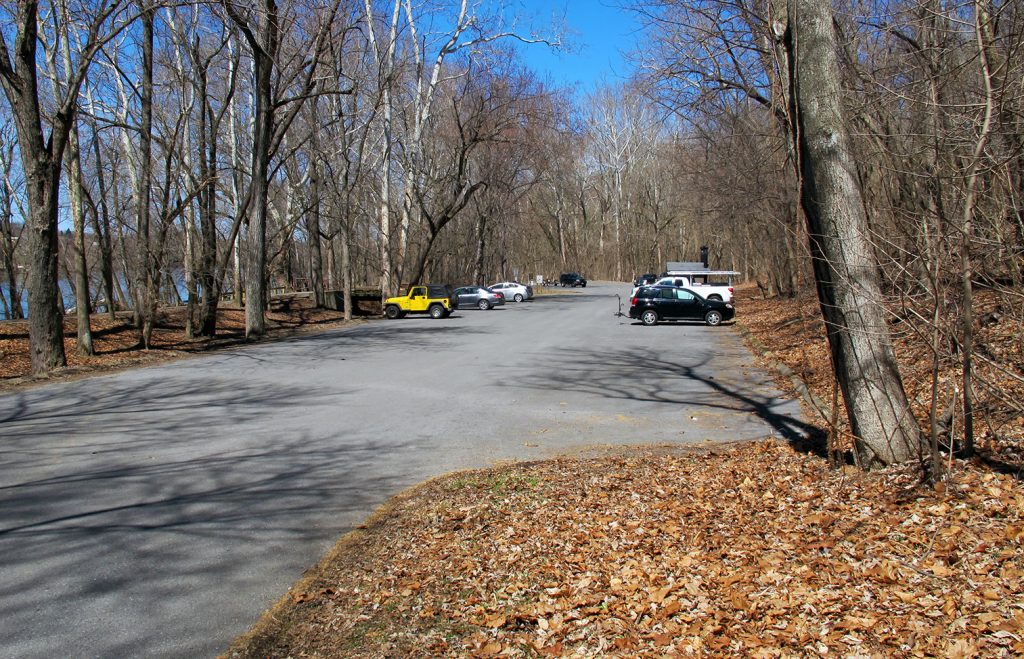 Parking spaces along Canal Road, near Antietam Creek and Aqueduct, with access to the towpath.